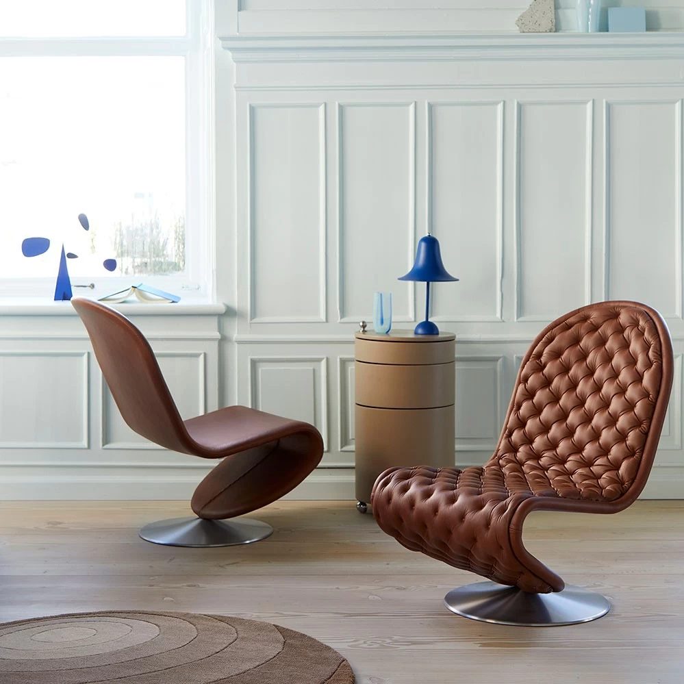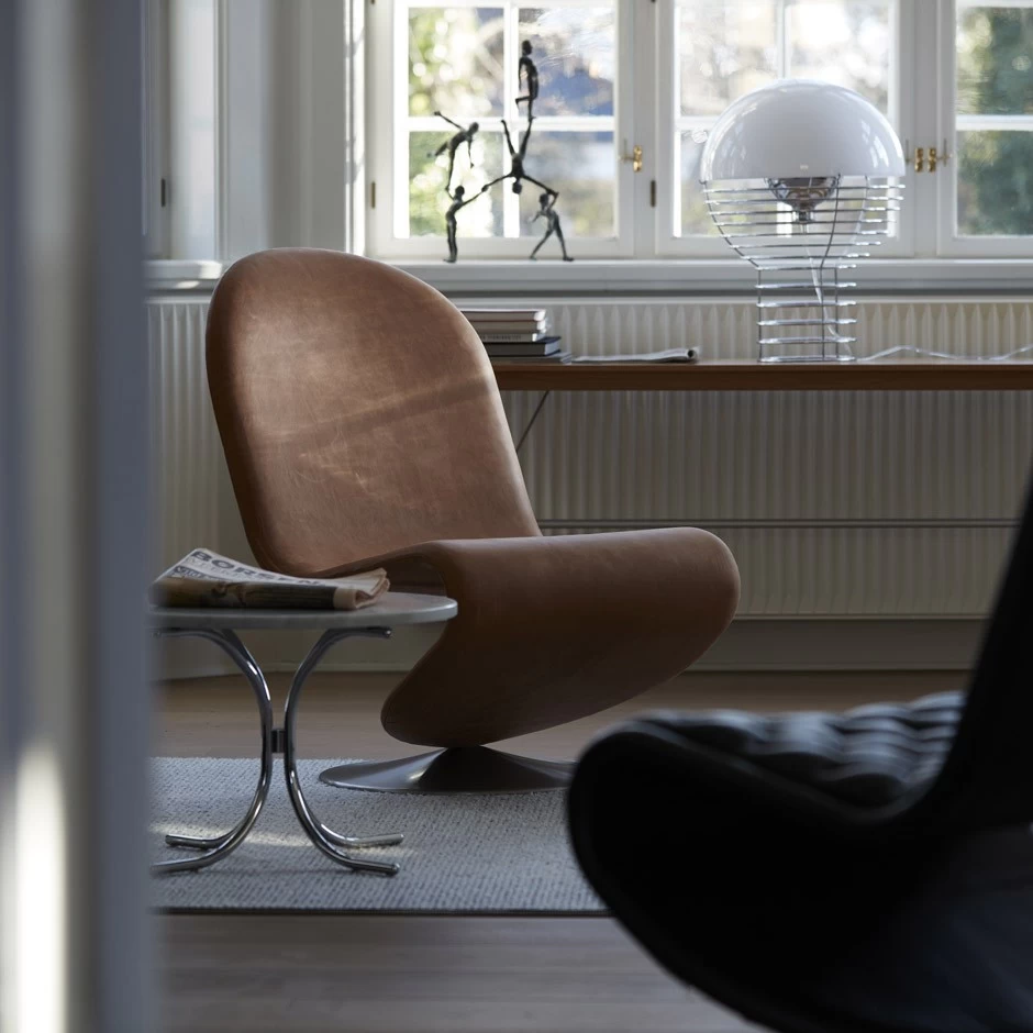 Beeinflusst von seinem genialen Entwurf des Kunststoff-Freischwingers Panton Chair entwarf Verner Panton ab 1973 das 1-2-3 System. Ursprünglich wurde das System, bestehend aus Freischwinger, Sessel und dazu passenden Tischen, in den 1970er Jahren von Fritz Hansen produziert. Die Neuauflage von Verpan ist in zwei Ausführungen lieferbar : als klassischen Stuhl oder als niedrigen Lounge-Sessel.