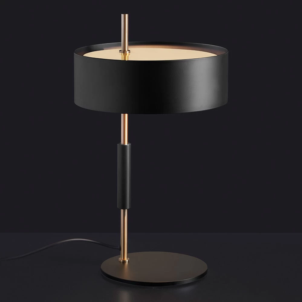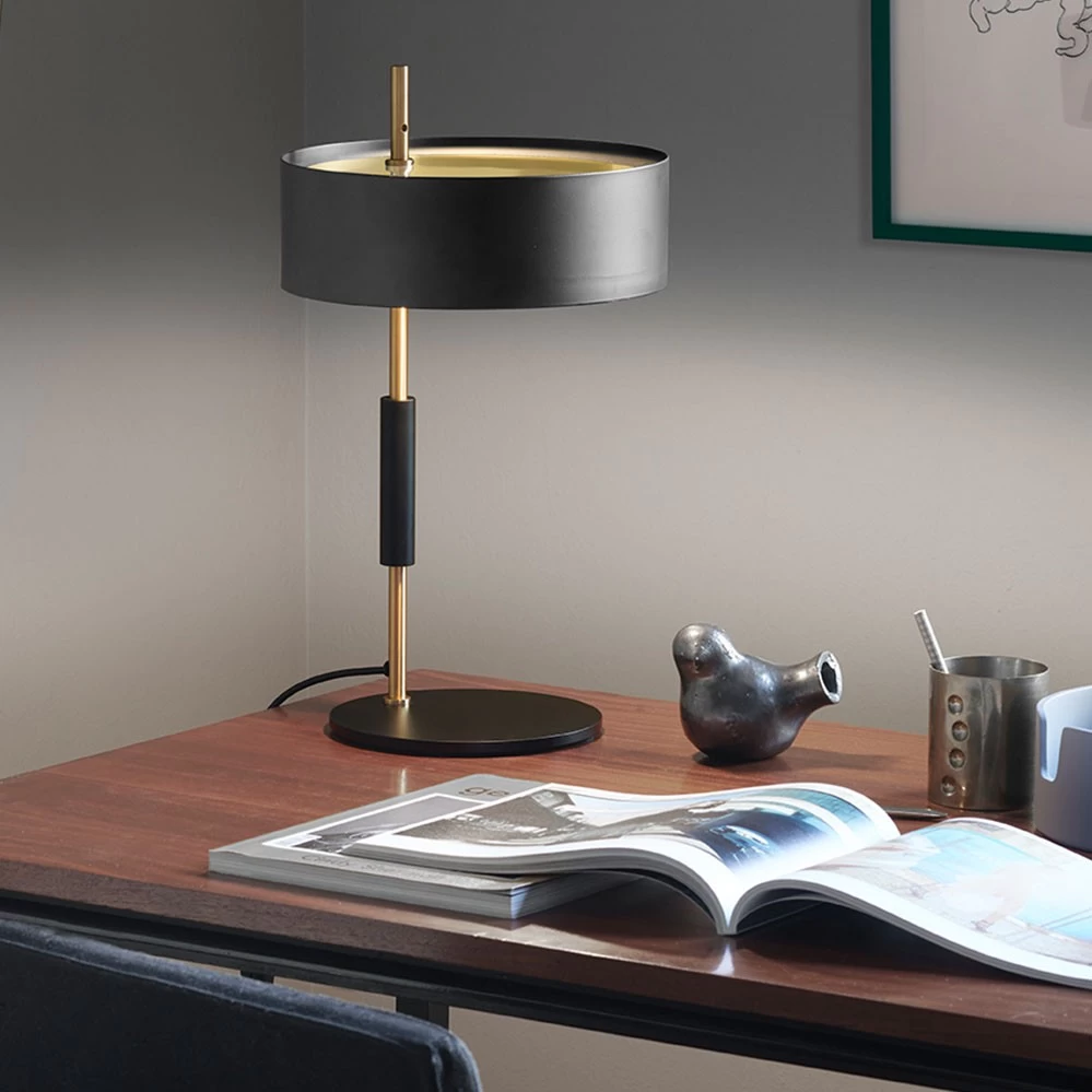 Die Tischleuchte 1953 wurde im Jahr 1953 von dem Oluce-Gründer Giuseppe Ostuni in Kooperation mit Renato Forti entworfen und 2019 als Neuauflage zusammen mit der gleichnamigen Stehleuchte von Oluce neu präsentiert. Die Leuchte mit dem versetzten Metallreflektor überzeugt mit ihrem eleganten Metallfinish aus mattem Schwarz in Kombination und einem satinierten Goldton.