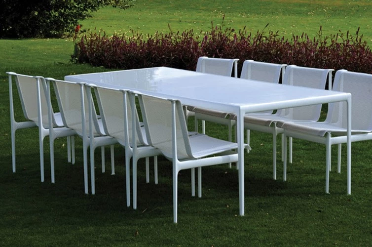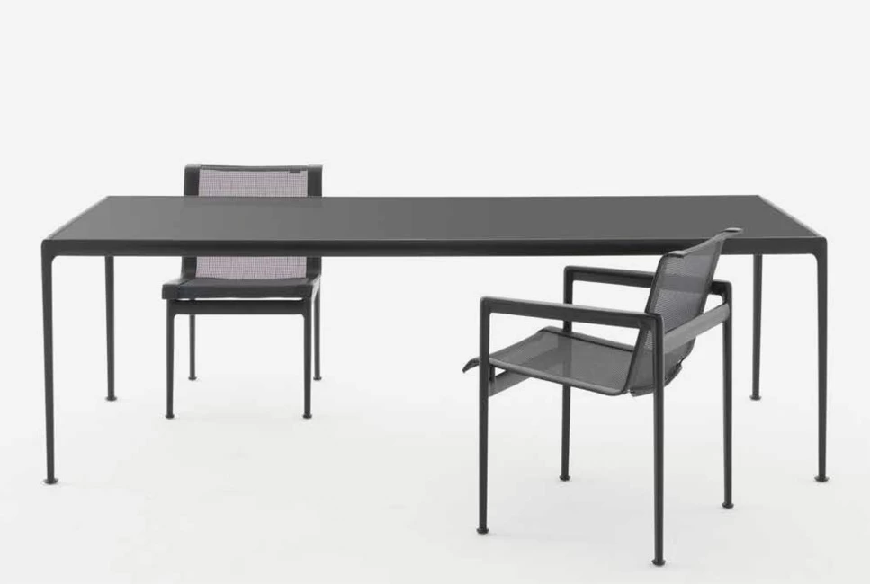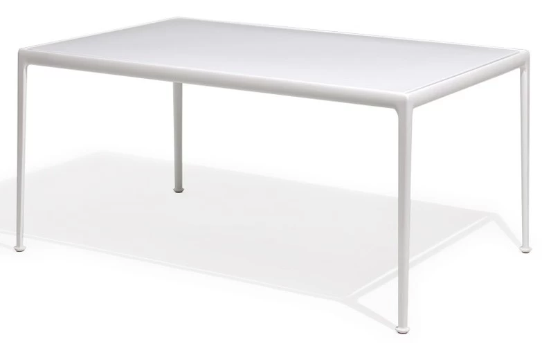 Der rechteckige Esstisch 1966 von Richard Schultz zählt zu der „1966 Leisure Collection” von Knoll International und ist in zwei Größen lieferbar. 1966 entwarf der Amerikaner Richard Schultz für Knoll diese Kollektion als eine der ersten Outdoormöbel-Programme. Diese Kollektion war stilbildend und gleichzeitig Vorreiter für zahlreiche andere Outdoormöbel. Die Tischplatte ist wahlweise aus Teakholz oder aus Porzellan-Emaille für den langlebigen Außeneinsatz.