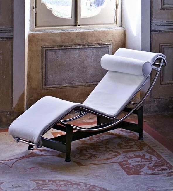 Die Chaise Longue à Reglage Continu ist ein gemeinsamer Entwurf von Le Corbusier, Pierre Jeanneret und Charlotte Perriand aus dem Jahr 1928. Besonders durchdacht ist die Konstruktion: Das Oberteil liegt auf dem Gestell lose auf, der Besitzer kann so selbst die gewünschte Ruheposition einstellen. Zusammen mit seinem Cousin Pierre Jeanneret gründete Le Corbusier (bzw. Charles-Édouard Jeanneret) 1923 das berühmte Architekturbüro in Paris. Während man sich dort zuerst auf Architekturentwürfe konzentrierte, entstand nach dem Eintritt von Charlotte Perriand 1927 eine umfangreiche Möbelkollektion, die heute zu den berühmtesten Designklassikern zählt. In den 1920er und 30er Jahren wurden diese Entwürfe in kleinen Auflagen von Firmen wie Thonet hergestellt, in den 1950er Jahren legte Le Corbusiers Galeristin Heidi Weber eine Edition auf, ab 1963 entstand bei Cassina in enger Zusammenarbeit mit Le Corbusier die heutige Edition.