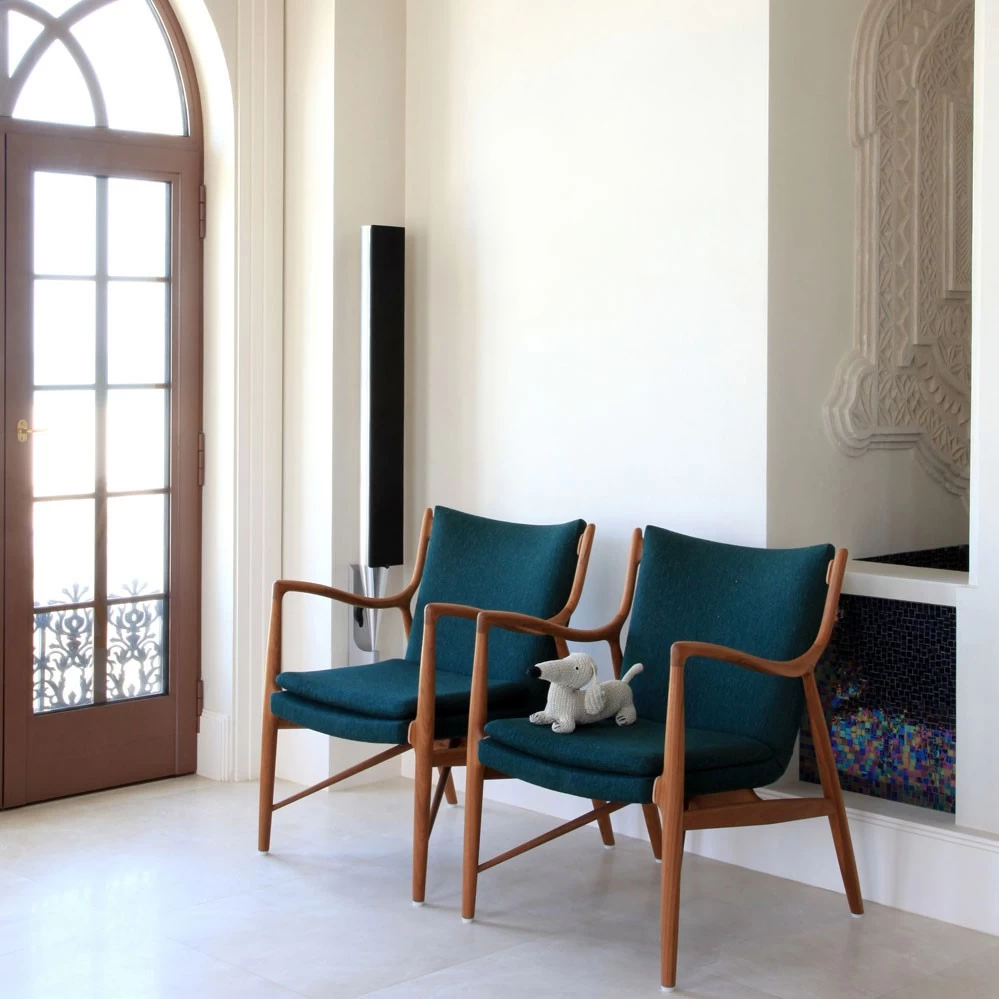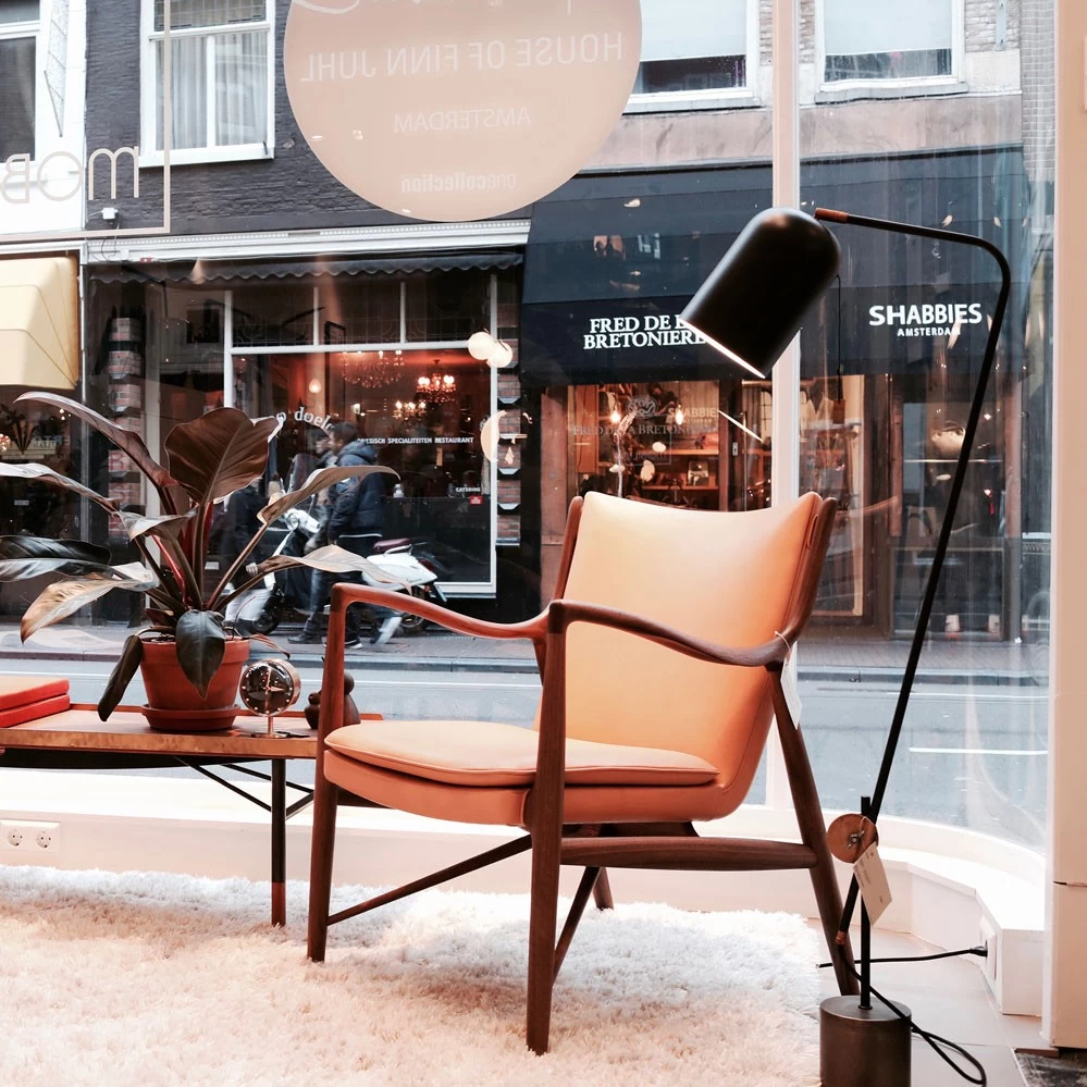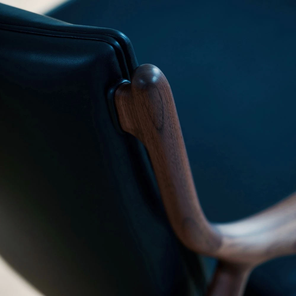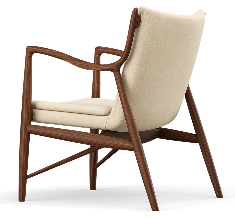 Einer unserer Lieblingsentwürfe von Finn Juhl ist der Stuhl oder Sessel 45 (natürlich nach dem Jahr 1945). Denn das Design des 45 Chair mit seiner eleganten Silhouette ist ein Meisterwerk und ein weiteres Symbol für das Genie von Finn Juhl. Der Sessel wurde erstmalig 1945 auf der Kopenhagener Cabinetmaker’s Guild Exhibition vorgestellt und vom japanischen Professor und Vorsitzenden-Experten Noritsugu Oda als „Mutter aller modernen Stühle” bezeichnet. Der Raum zwischen Rahmen und Sitzfläche schafft eine Leichtigkeit, die in Kombination mit ihrer organischen Form und den Details eine einzigartige Schönheit bilden. Dieser Stuhl war einer der ersten, der sich der Tradition der Sesselformgebung entledigte, indem er die Polsterbereiche aus dem Holzrahmen befreite. Geeignet ist der 45 Chair mit seiner Sitzhöhe von 42 cm wahlweise als Sessel wie auch als niedriger Stuhl.