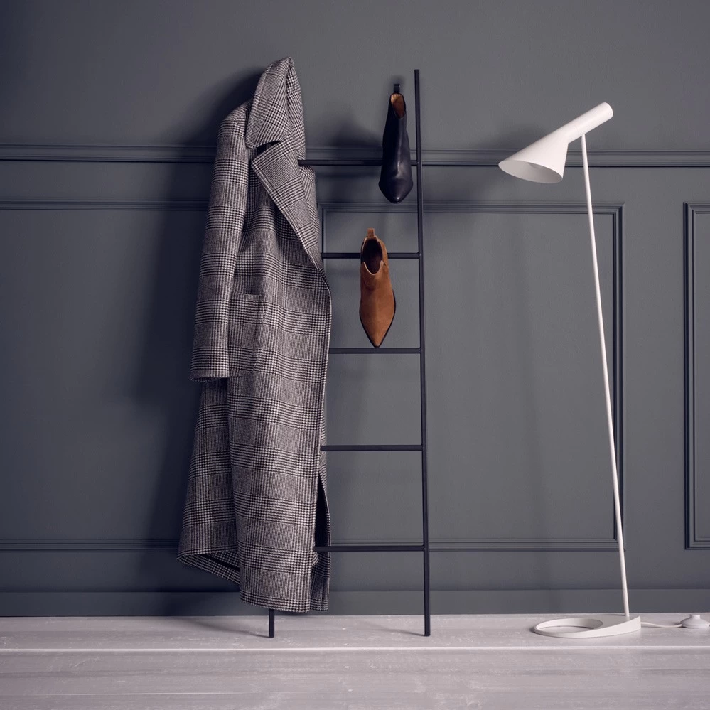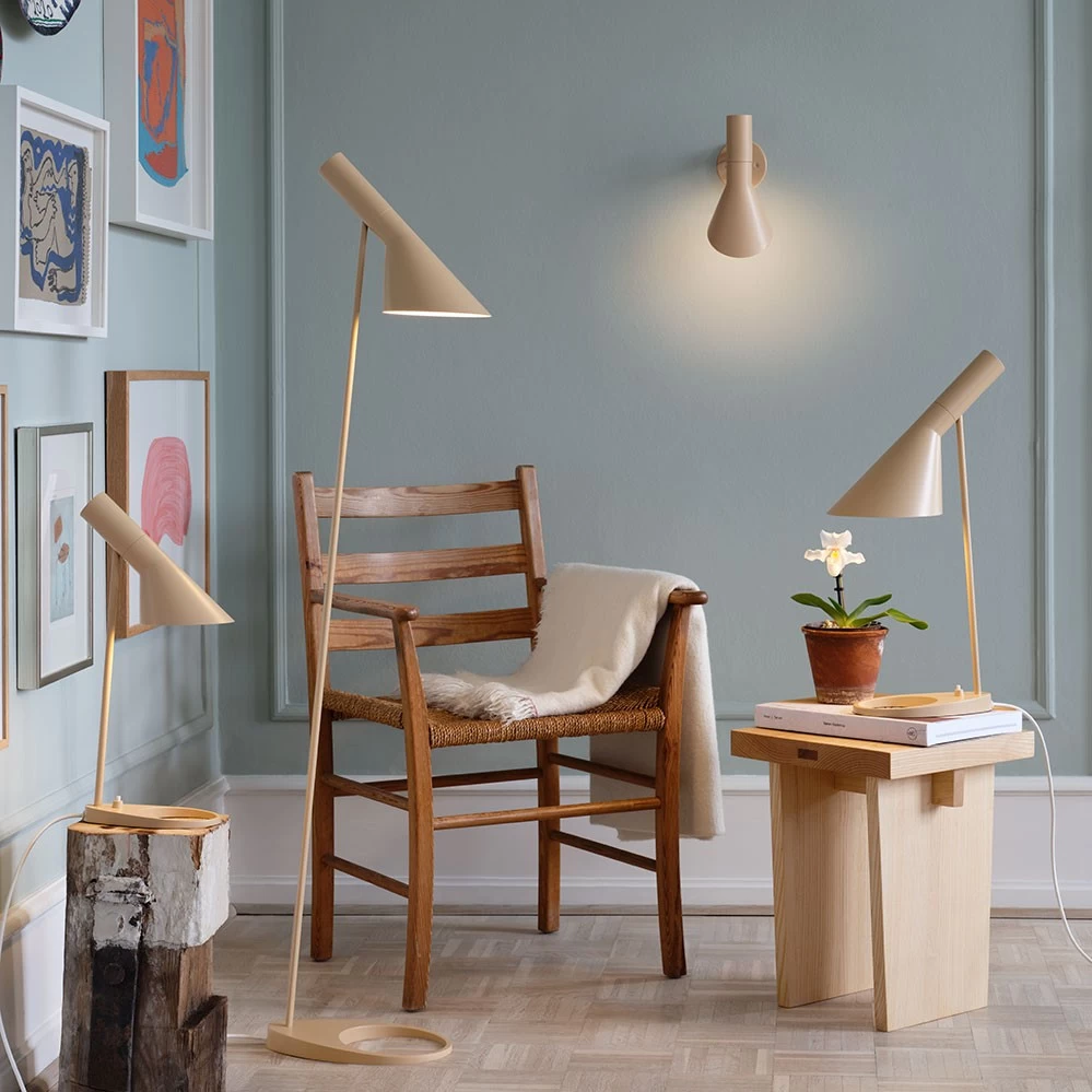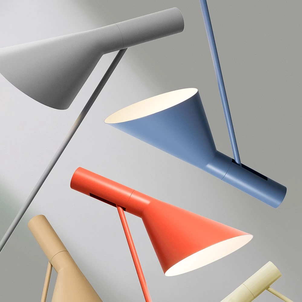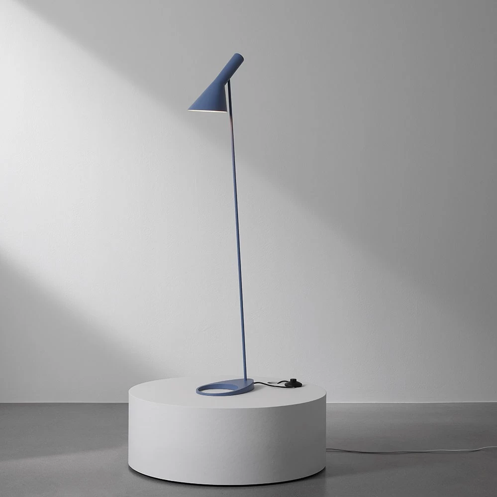 Entworfen wurde die AJ Stehleuchte 1957 für das SAS Hotel in Kopenhagen, wofür Jacobsen nicht nur die Möblierung entwarf, sondern auch Accessoires wie Uhren oder Leuchten wie die AJ Leuchtenserie von Louis Poulsen. Zusätzlich ist die Leuchte als Tisch- und Wandleuchte erhältlich.