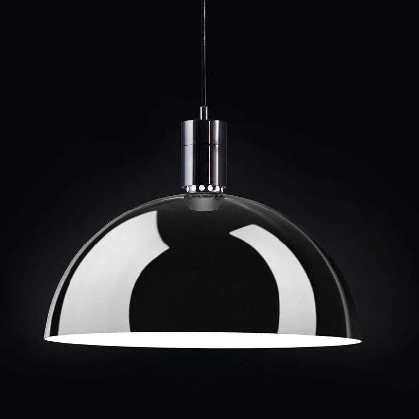 Die Pendelleuchte AM4Z mit einem verchromten Metallschirm von Franco Albini entstand 1969 in Kooperation mit dem Designer Franca Helg. Diese Leuchtenserie beinhaltet Elemente des Art Deco verbunden mit der Sachlichkeit der 1960er Jahre und wurde in zahlreichen Versionen hergestellt. Weitere Modelle der Serie finden Sie in der unteren Leiste.