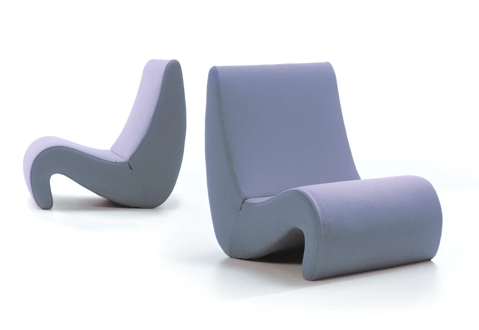 Der Sessel Amoebe ist ein gelungenes Beispiel für ein bodennahes Loungemöbel und verkörpert mit seinen kräftigen leuchtenden Farben den fröhlich-frechen Zeitgeist der frühen 1970er Jahre. Dank einer flexiblen Rückenschale ist der Sitzkomfort dieser Reedition von Vitra nochmals verbessert worden.
