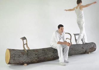 Eigentlich ist jeder Baumstamm in sich selbst eine Sitzgelegenheit. Damit man aber auch bequem sitzt, entwarf der niederländische Künstler und Designer Jurgen Bey drei klassische Stuhlrücken aus Bronze, die in den Stamm gesteckt werden sollen. So kann nach jedem Herbststurm eine neue Sitzmöglichkeit entstehen (Lieferung erfolgt ohne Baumstamm).