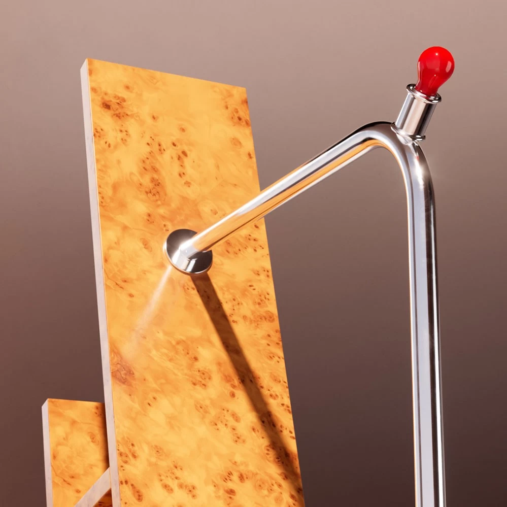 Selbst für Memphis Milano sehr ungewöhnlich ist das Sidebaord Beverly von Ettore Sottsass aus dem Jahr 1981. Denn durch die Verwendung unterschiedlichster Werkstoffe, die eigentlich kaum miteinander kombinierbar sind, entsteht ein Sideboard in Form eines Kunstwerkes der 1980er Jahre. Der optische Höhepunkt ist jedoch unserer Meinung nach die integrierte Beleuchtung mit der roten Glühbirne.