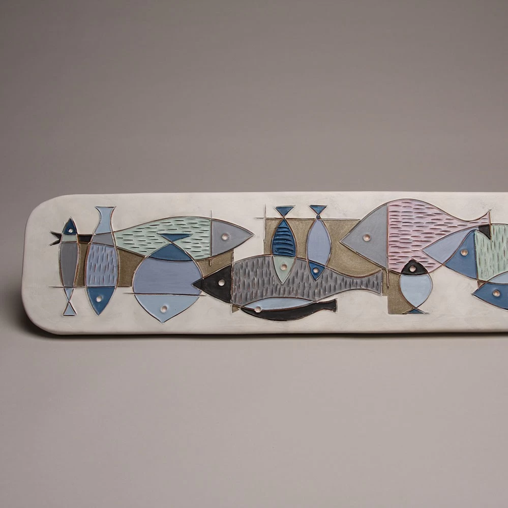 Im Rahmen der Edition Riedizioni Archivio Storico legt Bitossi ausgewählte Keramikobjekte nach Entwürfen von Aldo Londi aus den 1950er bis 70er-Jahren wieder auf, in dieser Zeit fungierte Londi als künstlerischer Leiter des Unternehmens. Zu seinen Entwürfen zählt auch diese Wandkeramik mit den Fischmotiven. Die Neuauflage ist auf 199 Exemplare limitiert.