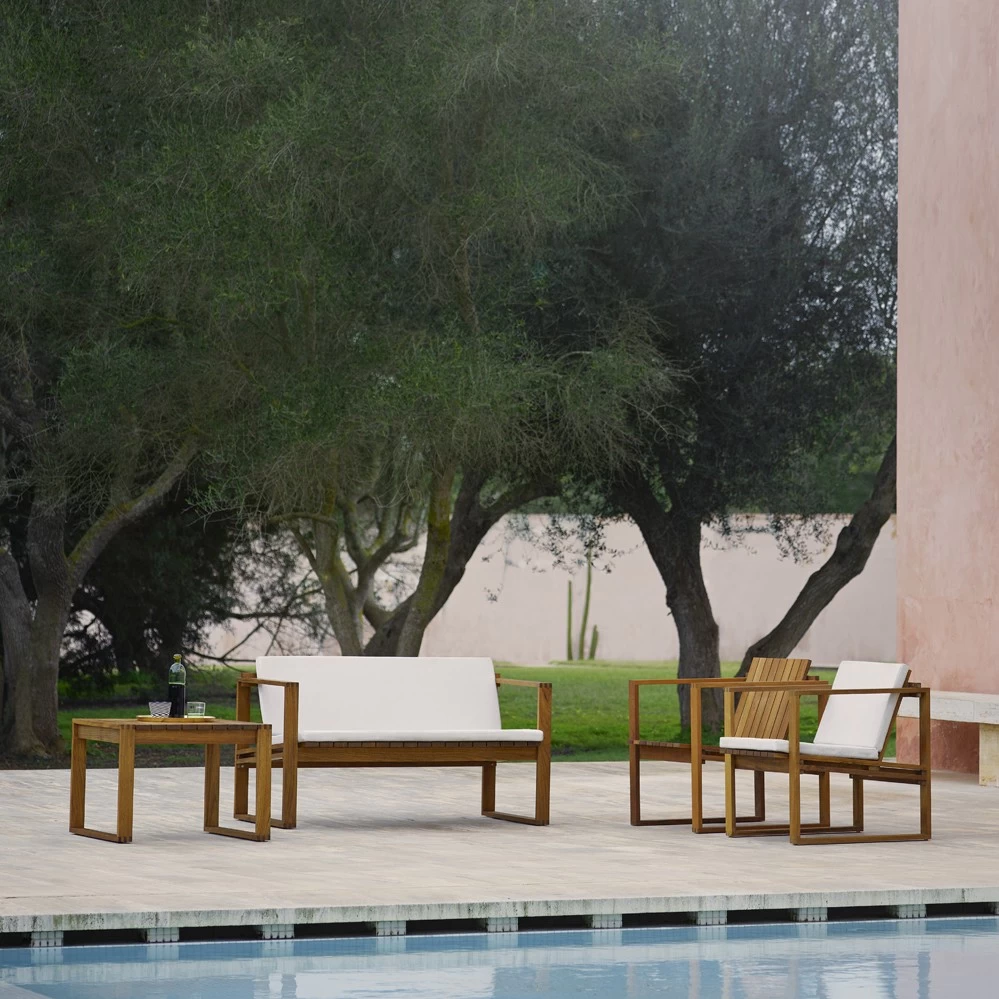 Der rechteckige Beistelltisch BK16 aus Teakholz der dänischen Architektin Bodil Kjær ist Bestandteil der Indoor-Outdoor Kollektion von Carl Hansen, der Entwurf stammt dem Jahr 1959. Das verwendete Teakholz kann sowohl im Innen- wie im Außenbereich verwendet werden. Weitere Möbel der Carl Hansen Indoor-Outdoor Kollektion gerne auf Anfrage.