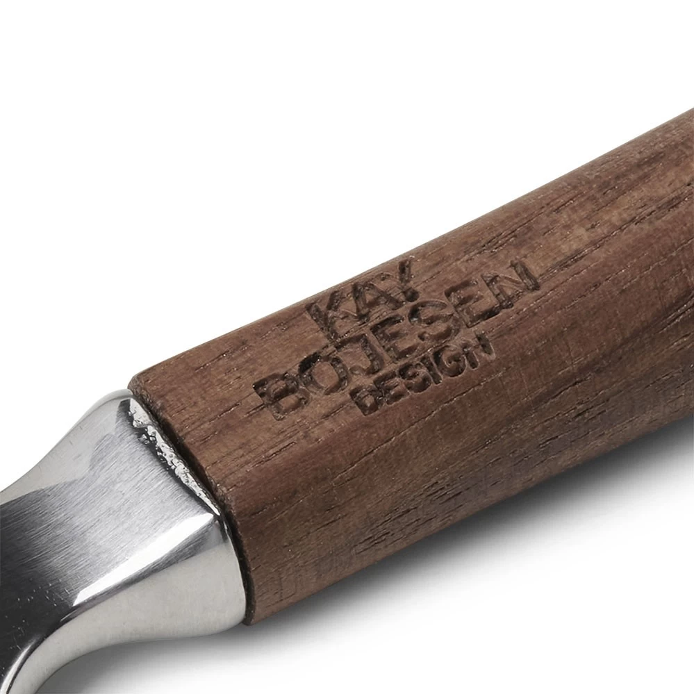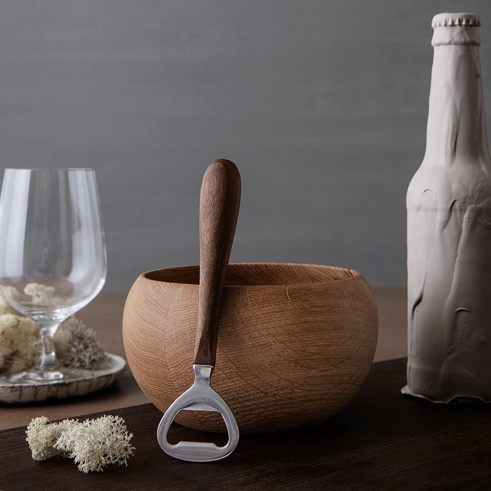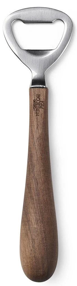 Der klassische Flaschenöffner wurde von Kay Bojesen im Jahr 1940 entworfen und 2022 von Rosendahl im Rahmen der Kay Bojesen Kollektion zusammen mit dem ähnlichen Korkenzieher wieder aufgelegt. Der Holzgriff ist aus geöltem Nussbaum.