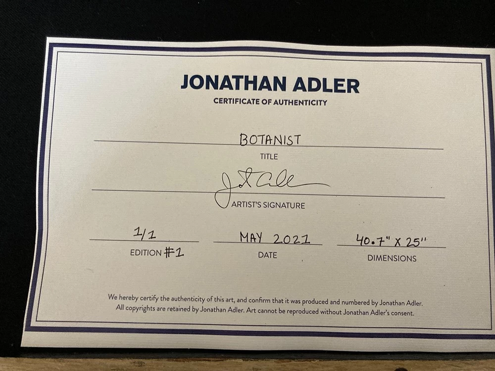 Jonathan Adler startete seine Karriere als Töpfer in New York, noch heute finden sich in seinem Portfolio zahlreichen Keramiken. Mittlerweile gilt er aber als einer der führenden Inneneinrichter der USA, sein eklektizistischer Stil fand Fans weltweit. Alleine in New York hat Jonathan Adler fünf eigene Boutiquen, der Sitz seines Unternehmens findet sich im Stadtteil Soho, wo er zusammen mit seinem Design-Team Möbel, Leuchten, Textilien – und jetzt noch Wandkunst entwirft.