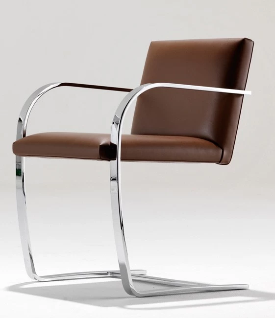 Für den Villa Tugendhat im tschechischen Brno schuf Ludwig Mies van der Rohe einen Freischwinger, der später den Namen der Stadt erhielt. Schon in den 1930er Jahren wurde der Freischwinger in Stahlrohr wie in Flachstahl hergestellt. Noch heute werden bei Knoll in Italien beide Versionen produziert, die wahlweise mit Stoff oder Leder geliefert werden können. In unserem Web-Shop finden Sie dabei eine kleine Auswahl der möglichen Stoff- und Ledervarianten – wir beraten Sie gerne!