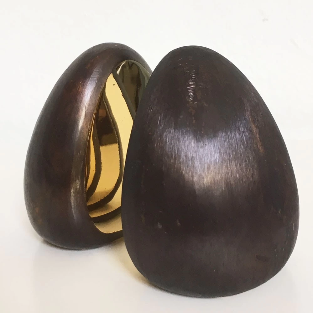 - 2 Buchstützen aus Messing poliert und schwarz patiniert