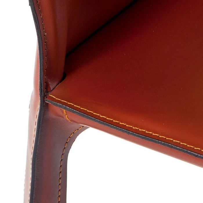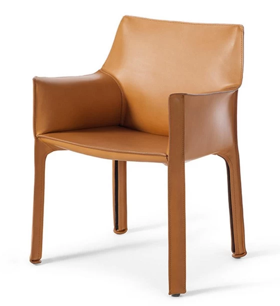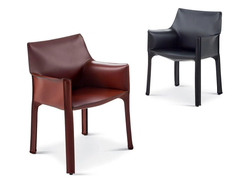 Ab 1977 entwarf Mario Bellini für Cassina die sehr erfolgreiche Cab Möbelserie aus Kernleder. Dazu zählen neben dem Cab Stuhl ein Barhocker, ein Sessel,ein Sofa und selbst ein Bett. Die Möbel aus Kernleder werden alle in Meda in Italien in höchster Handwerksqualität produziert, wovon wir uns bei einem Besuch bei Cassina überzeugen konnten. Interessant an dem Cab Stuhl ist das formale Konzept: Über ein Metallskelett wird der passende Bezug aus starkem Kernleder manuell aufgebracht – fertig ist der Stuhl. Die Lederteile werden dabei vorgestanzt und anschließend mit der Hand vernäht. Bei Markanto bieten wir als Standard vier Cassina Kernlederfarben an, auf Anfrage sind natürlich auch andere Farben möglich, Ledermuster senden wir gerne zu. Seit 2019 ist der Cab Armlehnstuhl bei Cassina in zwei verschiedenen Sitztiefen (ursprüngliche Variante 52 cm und neu 57 cm) erhältlich.
