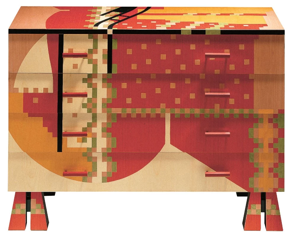 - Kommode aus Holz, mit individuellen Dekor nach Alessandro Mendini