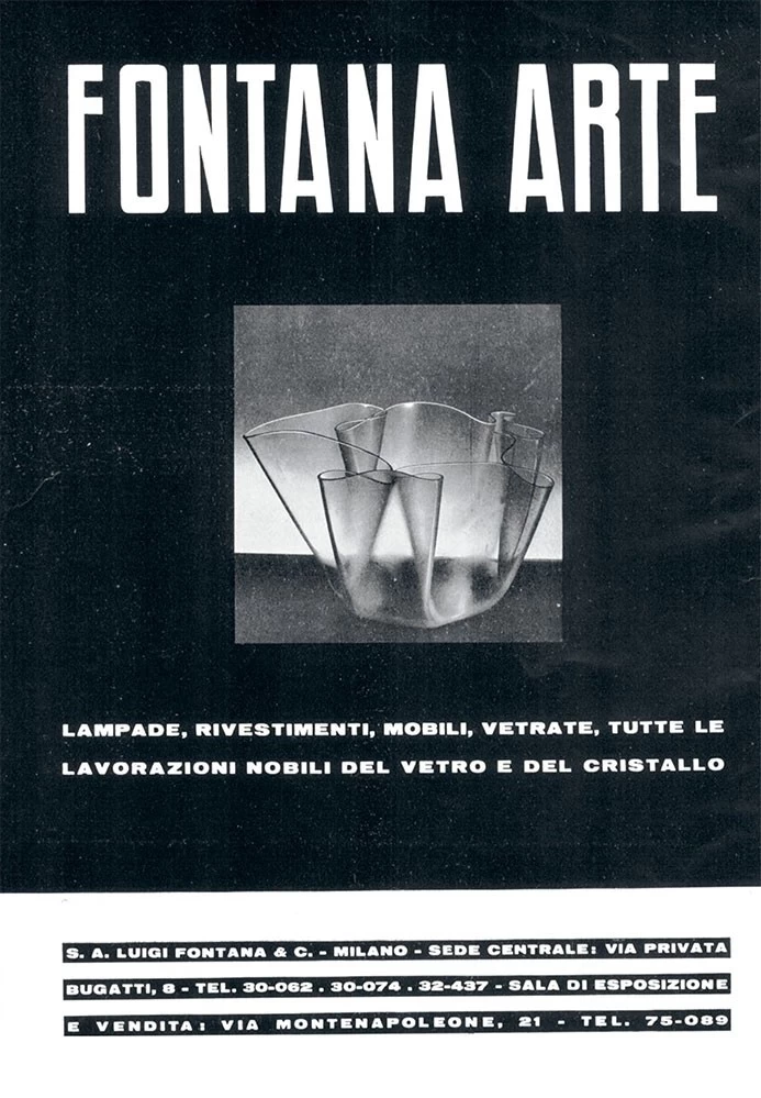 Die Glasmanufaktur Fontana Arte wurde ursprünglich 1932 von Gio Ponti und Pietro Chiesa gegründet und entstand aus der künstlerischen Abteilung der Firma Luigi Fontana. Die künstlerische Ausrichtung prägte Fontana Arte, so bestimmte Gio Ponti bis zum Ende der 1940er Jahre die Produktpolitik, später wurden Max Ingrand und Gae Aulenti die künstlerischen Leiter. bzw. Art Direktoren. Zahlreiche Glasprodukte von Fontana Arte gelten als Klassiker der Moderne, die bei Markanto gezeigte Auswahl ist exemplarisch für die Vielfalt der Manufaktur zu verstehen (weitere Produkte gerne auf Anfrage).