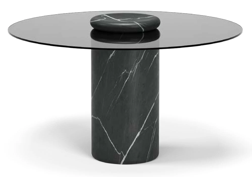 Der runde Marmortisch Castore wurde von Angelo Mangiarotti 1975 entworfen und 2002 von Karakter neu aufgelegt. Der Tischfuß ist wahlweise aus schwarzem oder weißem Marmor, die Tischplatte aus klarem oder rauchfarbigem 10 starken Glas. Das mitlere Element de Tisches soll dabei als eine Art Schale dienen.