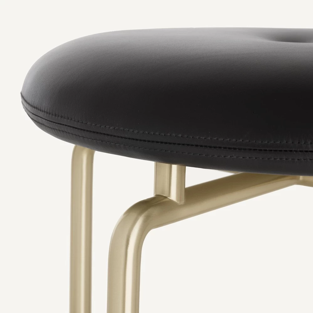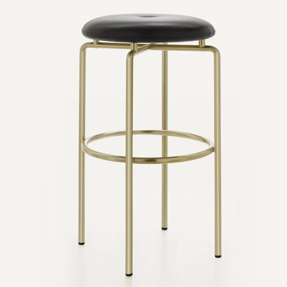 Bei dem Circular Bar Stool von BassamFellows handelt es sich um einen Entwurf aus dem Jahr 2016. Der in verschiedenen Sitzhöhen verfügbare Barhocker ist geprägt durch den Kontrast, der sich aus der Kombination eines Stahlrohrgestells mit einem gepolsterten Ledersitz ergibt und der dem Sitz eine schwebende Anmutung verleiht. Eine Besonderheit stellt die Biegung der Beine dar: hier wurde der engste technisch realisierbare Radius gewählt. Dieses in der Fertigung anspruchsvolle Detail setzt den Hocker auf subtile Weise gegenüber anderen Modellen ab. Erhältlich ist der Barhocker in zwei Größen:
