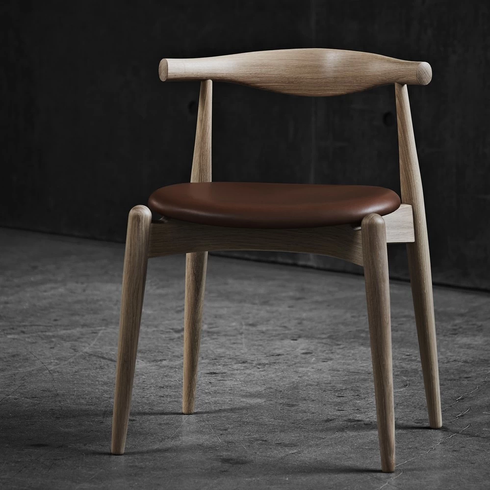 Der Stuhl CH20 Elbow Chair mit seiner Ledersitzfläche ist ein Entwurf von Hans Wegner aus dem Jahr 1956. Neben der hier angebotenen Variante in Leder ist der stapelbare Elbow Chair auch in zahlreichen Stoffen lieferbar (schöner und passender ist aber nach unserer Meinung die Ledervariante). Erhältlich ist der dänische Designklassiker bei Markanto wahlweise in Buche oder Eiche.