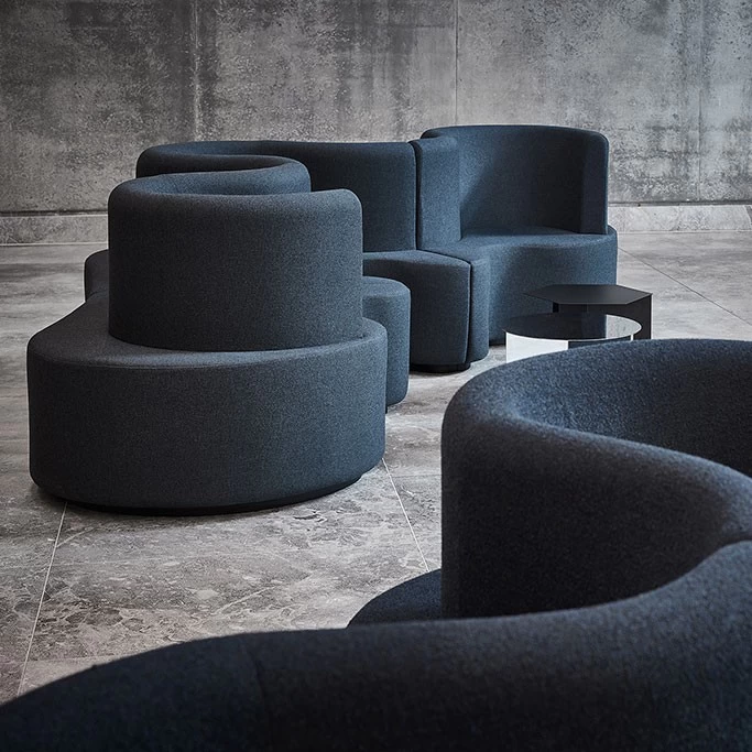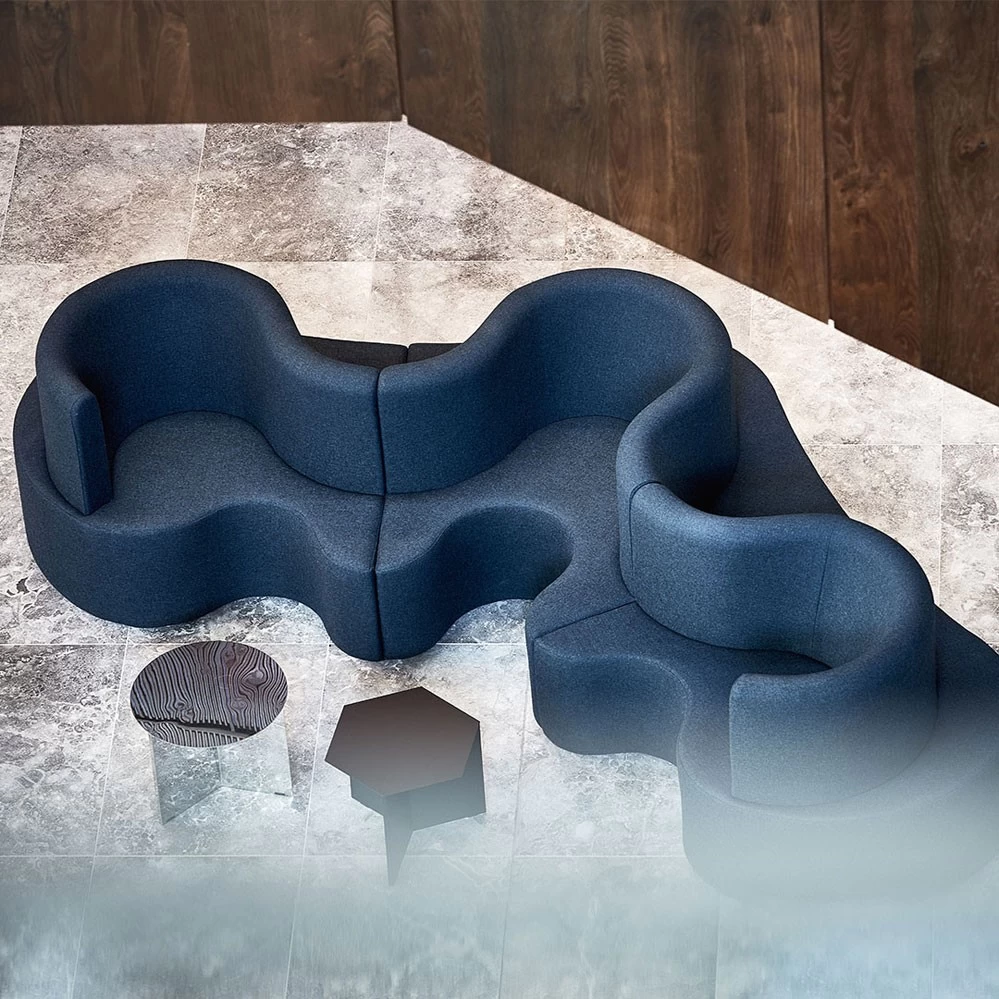 Die hier angebotene Variante des Cloverleaf Sofas besteht aus drei Modulen (ein linkes Element, ein mittleres Element und rechtes Element). Weitere Varianten oder andere Stoffpolsterungen gerne auf Anfrage – bitte fragen Sie uns nach einem individuellen Angebot für Ihre Sofa-Konfiguration. Optional ist zum Sofa noch eine Aufladestation für Handys und Laptops möglich.