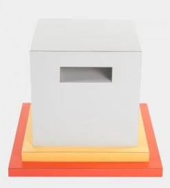 Bereits in den 1960er Jahren entwarf Ettore Sottsass erste monolithische, kubische Möbel für Poltronova. Dieses Konzept setzte er später bei Memphis fort – wie mit dem Beistelltisch Cream aus dem Jahr 1984.