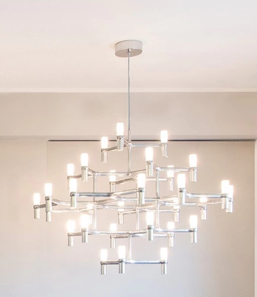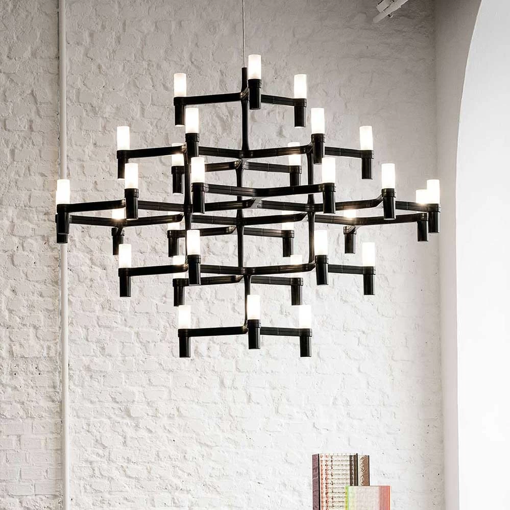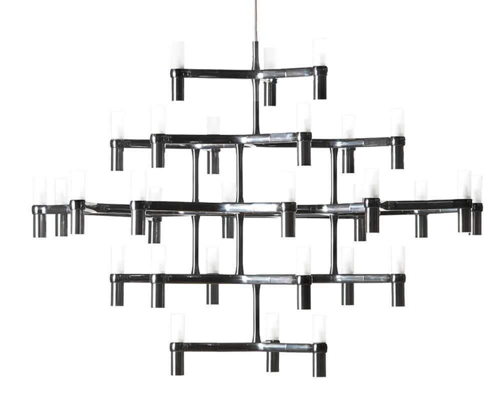 Hinter dem Kronleuchter Crown der beiden deutschen Designer Markus Jehs und Jürgen Laub (auch Jehs+Laub) verbirgt sich eine ganze Leuchtenfamilie. Daher ist die hier angebotene Variante Crown Major von Nemo exemplarisch zu verstehen – fordern Sie bei Interesse bitte Informationen über die weiteren Varianten an.