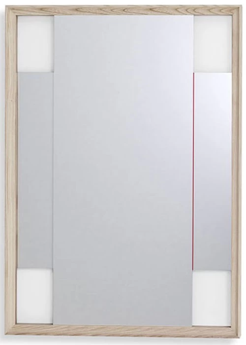 Kristallglas-Spiegel wie Kunstwerke: Das Motiv 2 Crossing Path zählt zur künstlerischen Deadline Mirrors-Serie von Cassina, die insgesamt 12 Motive in drei Größen umfasst. Neben der Variante mit einer Rahmung in Esche natur ist auch eine schwarze Rahmung möglich. Bei dem Motiv 2 Crossing Path hat die vordere Glasscheiben ein großflächigen, silberfarbigen Streifen, dass rückseitig rot lackiert ist. Der hintere Glasscheibe umfasst einen horizontales Streifen und reflektiert die Ebene in einem graphischen Spiel je nach Blickwinkel des Betrachters.