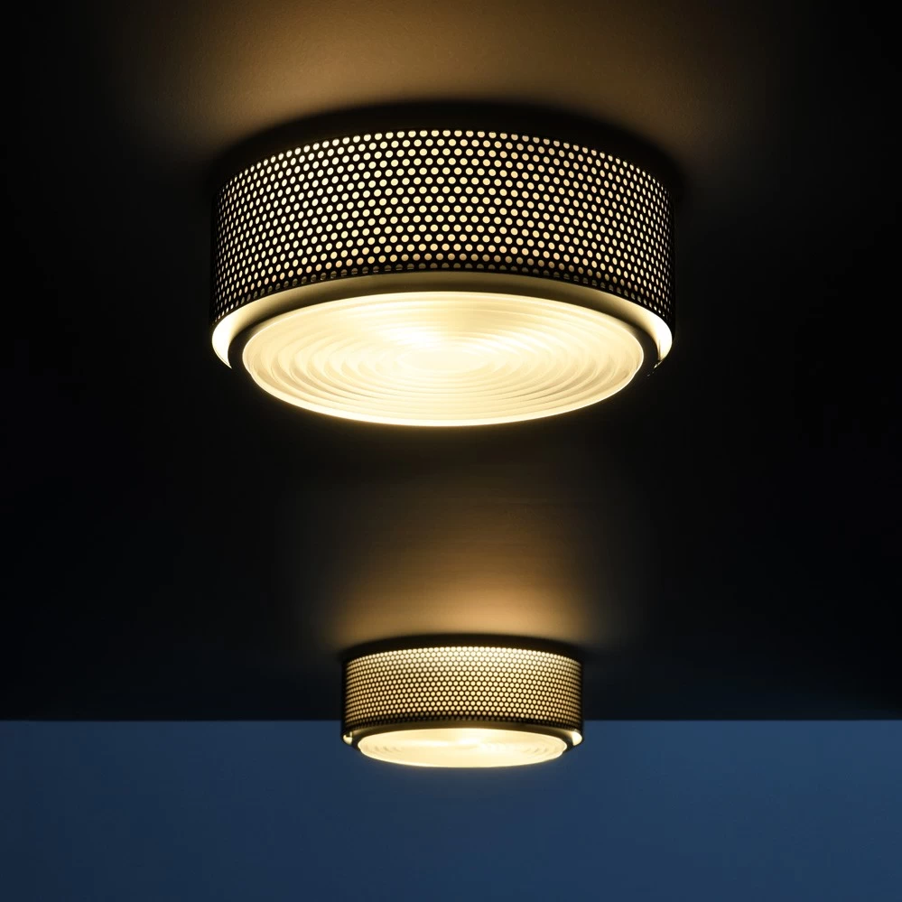 Immer wieder werden wir von Kunden nach einer Lösung für eine schöne Deckenleuchte gefragt. Allerdings ist die Auswahl hier in der Designwelt recht eingeschränkt, die meisten Architekten oder Entwerfer haben sich auf Pendelleuchten konzentriert. Seit 2019 gibt es mit der Decken- oder Wandleuchte G13 von Pierre Guariche aus dem Jahr 1952 nun eine Alternative. Durch das perforierte Metallblech ergibt sich bei der Guariche Leuchte ein sehr schöner, diffuser Leuchteffekt, verbunden mit einer sogenannten Fresnel-Linse. Erhältlich ist die Leuchte in drei Größen und drei Farben: