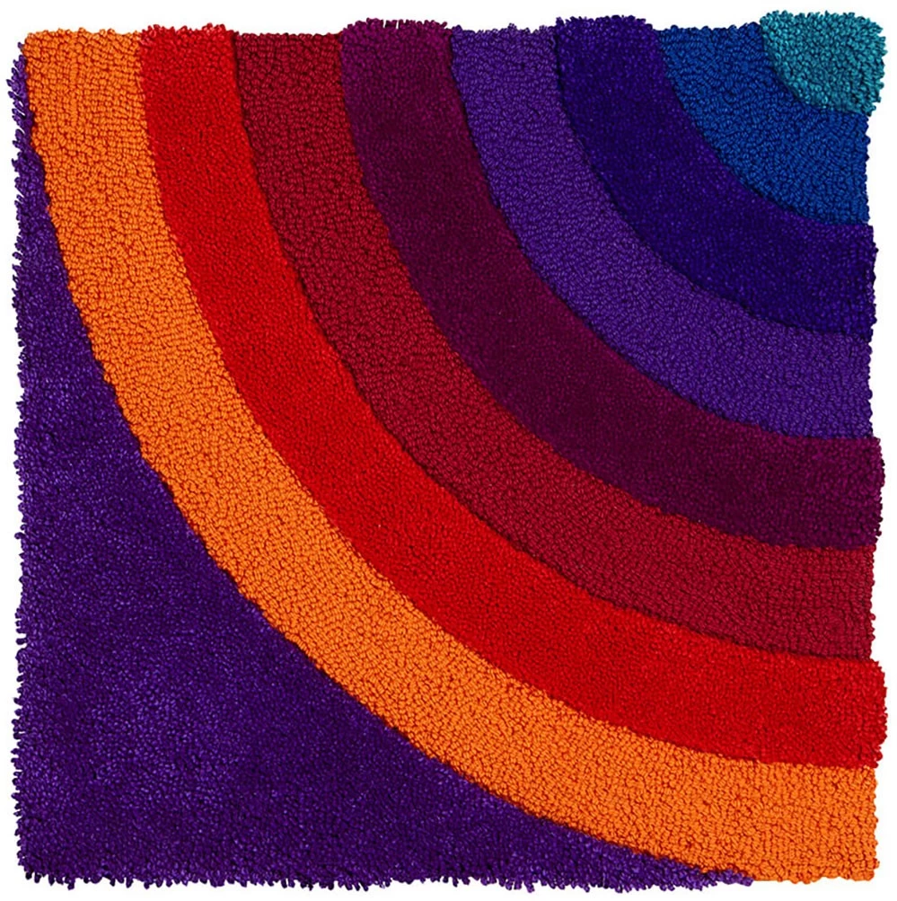 Der Domino 1/4 Circle Teppich von Verner Panton ist wahlweise positiv oder negativ erhältlich. Um 1974 entwickelte Verner Panton für die Schweizer Firma Mira X eine Kollektion aus quadratischen Modulen im Format von 60 x 60 cm, die durch geometrische Muster wie Kreise, Quadrate, Kurven, Wellen oder Streifen in acht Farben aus Pantons Farbwelt definiert sind. Diese Domino Teppiche Module lassen sich individuell zusammenstellen, um unterschiedlichsten Dekore zu verwirklichen. Die Domino Module eignen sich nicht nur zur Dekoration von Böden, sondern auch von Wänden und können darüberhinaus zur Optimierung der akustischen Eigenschaften eines Raumes eingesetzt werden.