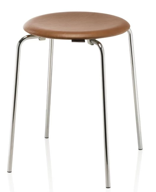 Fritz Hansen Dot Hocker / Dot Stool von Arne Jacobsen: Ledersitzfläche in Walnut
