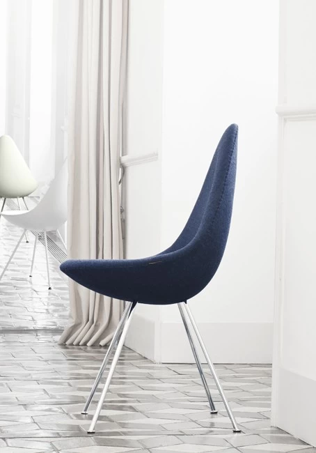 Der Drop Chair wurde von Arne Jacobsen für sein Meisterwerk, dem Radisson Blu Royal Hotel in Kopenhagen, im Jahr 1958 entworfen. Dabei wurde der Stuhl damals ausschließlich in den einzelnen Gästezimmern des Hotels verwendet. Bedingt durch diese exklusive Nutzung wurde der organisch geformte Stuhl nie bekannt, dabei steht er in der gleichen Historie wie die beiden Jacobsen Sessel Egg Chair und Swan Chair.