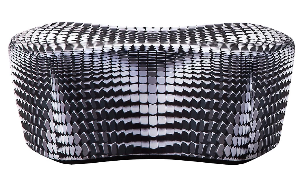 Der sehr futuristische Hocker Drum kann als Ottoman zum gleichnamigen Sessel des Architekten Mac Stopa dienen oder als Solitär Verwendung finden. Der an Op-Art erinnernde Textilbezug mit dem dreidimensional wirkenden Stretchmaterial Optical verleiht dem Sessel eine flirrende Optik und betont seine Plastizität. Neben dieser ikonischen Version ist der Sessel auf Anfrage in anderen Farben oder in Leder bei Cappellini erhältlich.