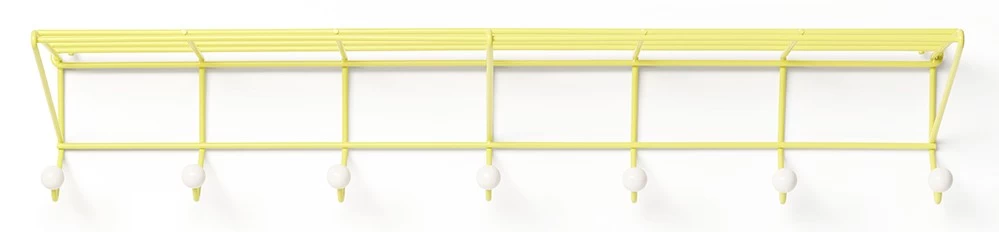 Die 91 cm lange Garderobe Utrecht DW01 entwarf Friso Kramer im Jahr 1956, 2023 wurde der funktionale Entwurf von Spectrum neu aufgelegt. Die Kugeln der Wandgarderobe sind immer weiß.