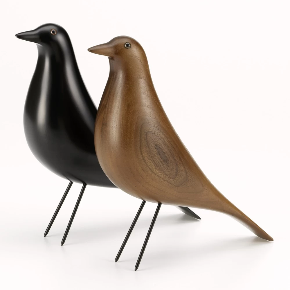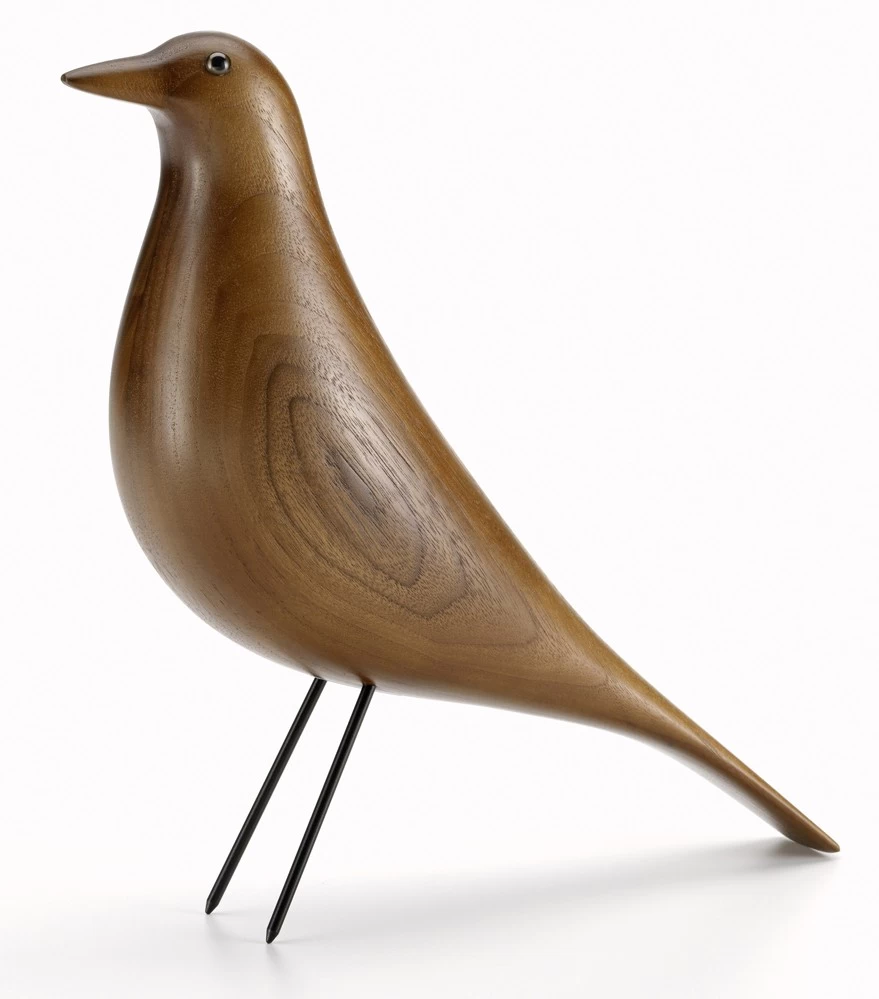 Streng genommen ist der Eames House Bird kein Designklassiker. Aber er steht exemplarisch für das Wirken von Charles und Ray Eames, die sich immer wieder Anregungen durch ungewöhnliche Objekte holten. Einen besonderen Stellenwert hat dabei der schwarze Holzvogel, der von den Eames immer wieder als Dekorationsobjekt (z.B. auf dem berühmten Photo mit den Eames Wire Chairs) eingesetzt wurde. Der Originalvogel ist dabei wahrscheinlich ein Entwurf des amerikanischen Kunsthandwerkers Charles Perdewaus am Anfang des 20. Jahrhunderts, der im Bundesstaat Illinois einen Handel mit hölzernen Vogelfallen und -pfeifen betrieb. Der Eames House Bird findet sich noch heute im denkmalgeschützten Eames House in Kalifornieren, wodurch sich der Name ableitete. Das Eames Ehepaar bereicherte ihr Haus mit zahlreichen Objekten, welche sie von ihren Reisen mitbrachten – wie z. B. afrikanische Hocker oder traditionelle Kunstobjekte. In Zusammenarbeit mit der Eames Familie hat Vitra den Eames House Bird als Serie aufgelegt.