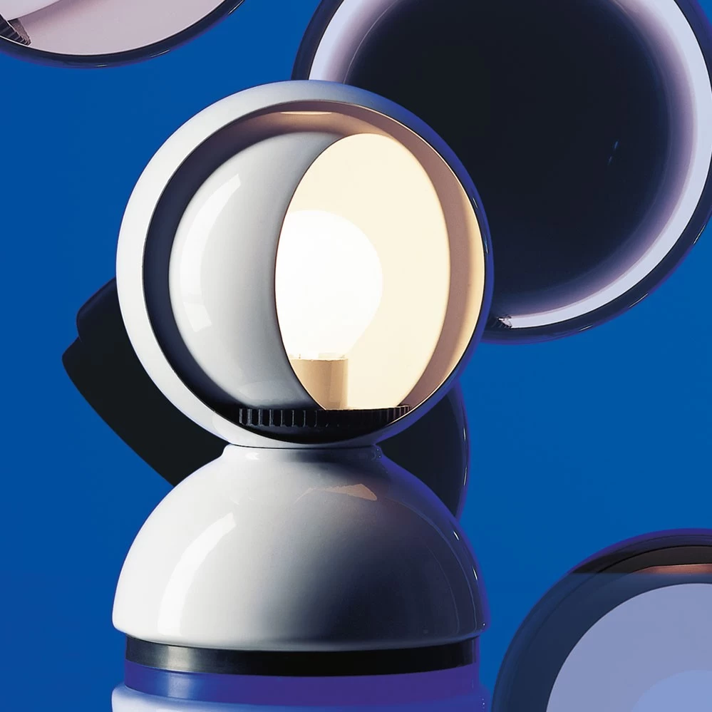 Vico Magistretti entwarf 1969 mit der Eclisse für Artemide einen zeitlosen Designklassiker, der exemplarisch für das oft verspielte aber durchdachte italienische Design steht. Der Entwurf der Nachtischleuchte Eclisse basiert auf dem Einsatz einer primären Form – der Kugel. Die Grundplatte ist halbkugelförmig und enthält die elektrischen Komponenten. Darüber befinden sich zwei offene Kugeln, von denen eine Kugel auf der vertikalen Achse verstellt werden kann. So entsteht ein ausrichtbares und regelbares Licht.