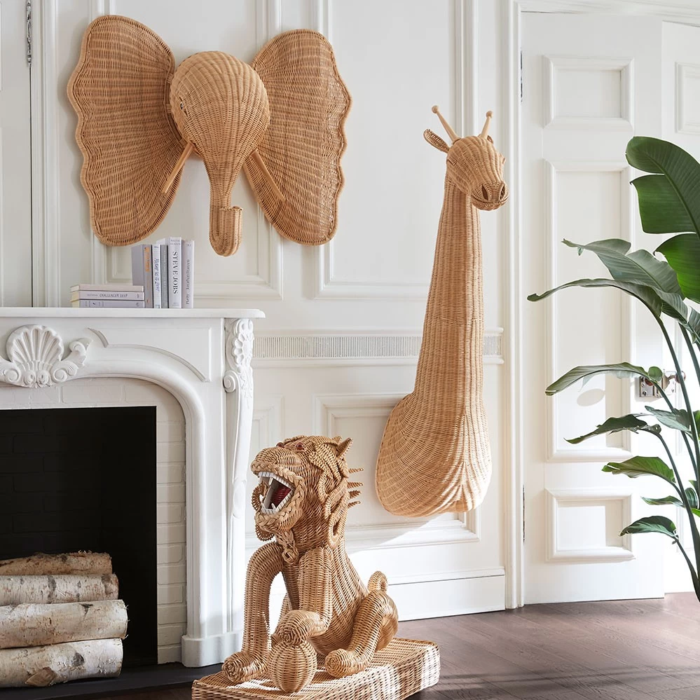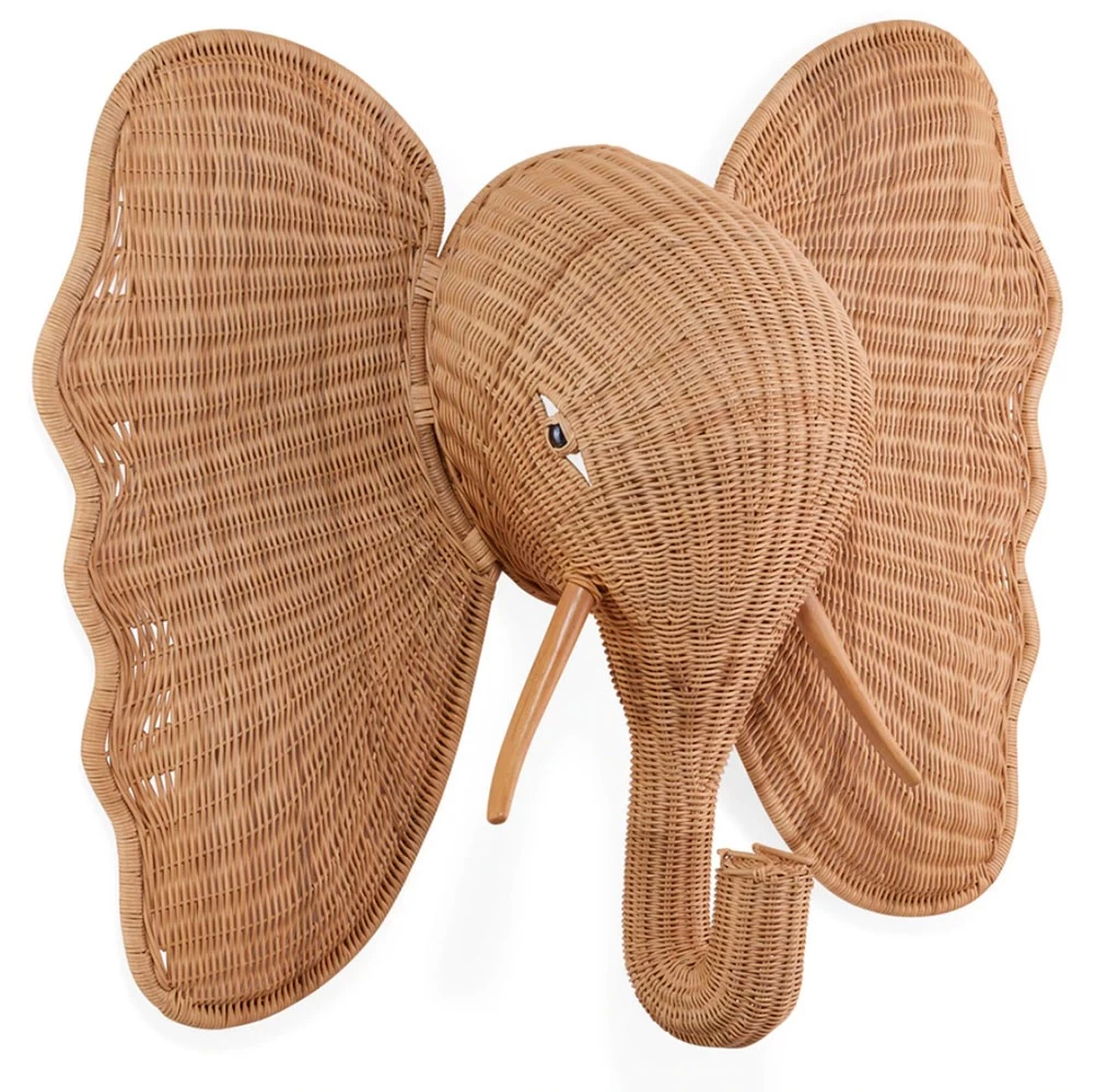 Unser neuer Liebling ist eine Trophäe aus New York: Der Elefant ist als Wanddekoration gedacht und wird aus Korbgeflecht gefertigt. Der Entwurf von Jonathan Adler stammt aus dem Jahr 2022, die Herstellung eines Elefanten erfolgt durch einem einzigen Handwerker im Laufe von vier Tagen. Weitere zwei Tage werden benötigt die Skulptur von Hand zu trimmen.