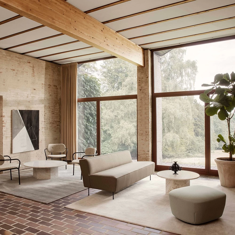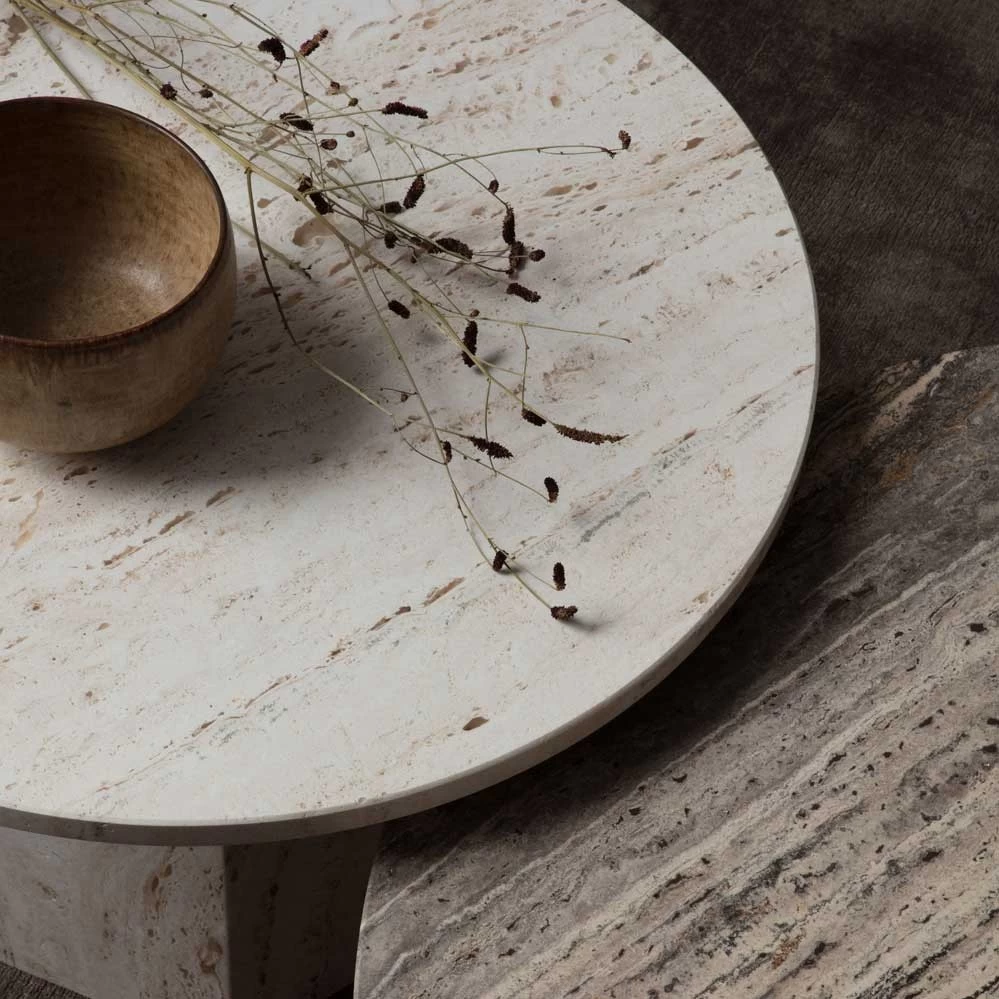 Die Travertintische von Gubi sind dabei in drei Steinfarben erhältlich: weißer Travertin, grauer Travertin und der seltene rote Travertin.