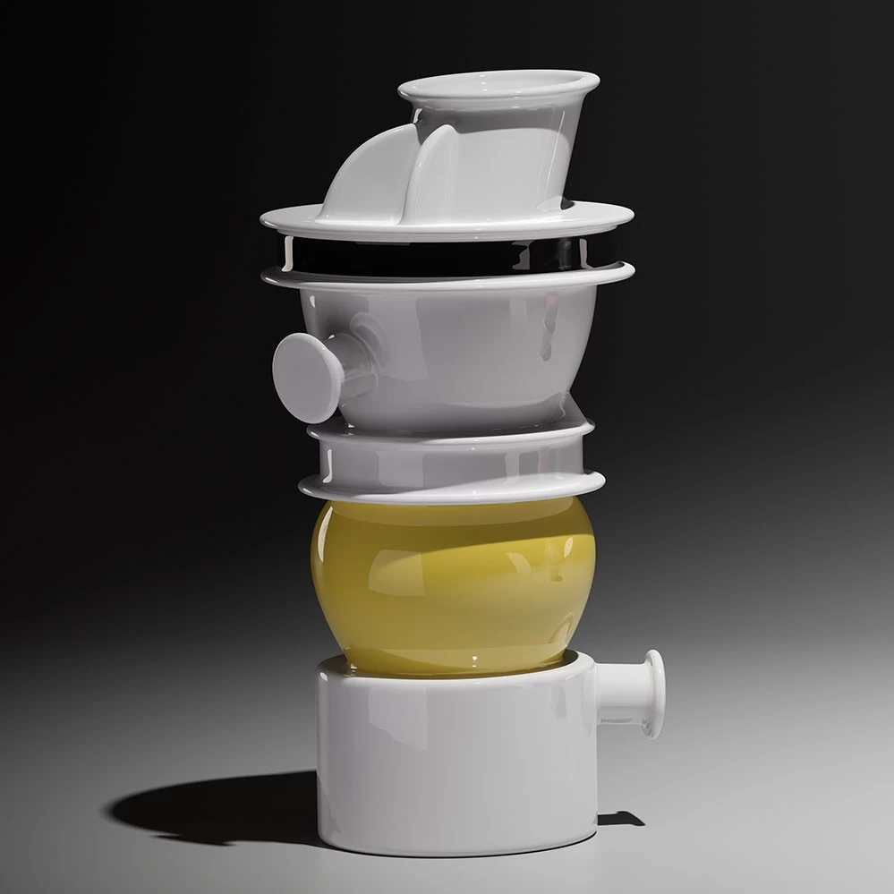 Die Euphrates Vase von Ettore Sottass zählt zu der dreiteiligen Porzellanserie Rivers, bestehend aus den Porzellanvasen Nilo, Tigris und Euphrates. Neben zahlreichen Möbeln und Leuchten umfasst die Memphis Kollektion verschiedenste Glas- und Keramikobjekte, die bei Markanto gerne auf Angfrage erhältlich sind.