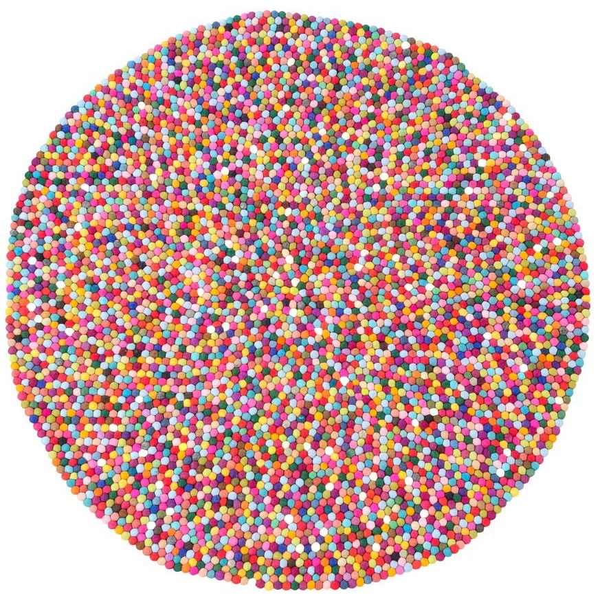 Der Filzteppich Confetti ist ein Werksentwurf von Designercarpets, bei dem bunte Filzkugeln zu einem Teppich zusammengenäht sind. Zusätzlich ist der Teppich bei Markanto noch in einer schwarz-weißen Farbkompostion erhältlich. Der Teppich ist in vier Größen lieferbar.