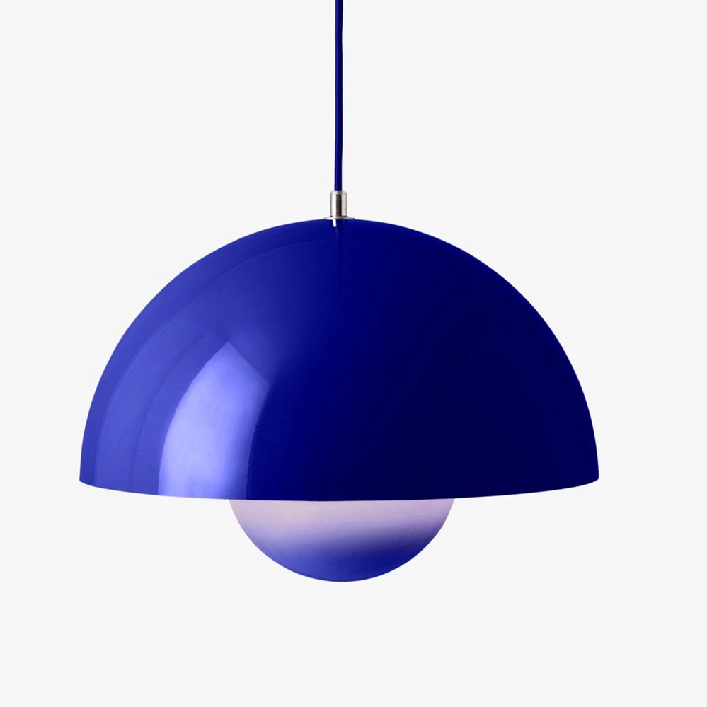 - Flowerpot VP7 Pendelleuchte glänzend lackiert: Graubeige, Mustard, Rot (Vermilion Red), Hellblau (Swim Blue), Blau (Cobalt Blue), Grün (Signalgrün)