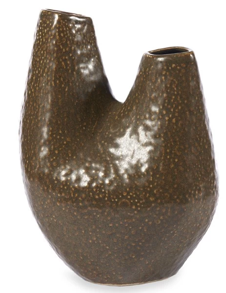 Die amorphe Vulkanvase Fuji ist ein Entwurf aus dem Jahr 2016, stammt aus Jonathan Adlers Volcano-Kollektion und ist sichtlich von vergleichbaren Entwürfen aus den 1970er Jahren inspiriert, wie sie damals häufig in Deutschland entstanden. Das Pendant dazu ist die hohe Vase Krakatoa, gefertigt werden die beiden Steingut-Vasen von Hand in Peru.