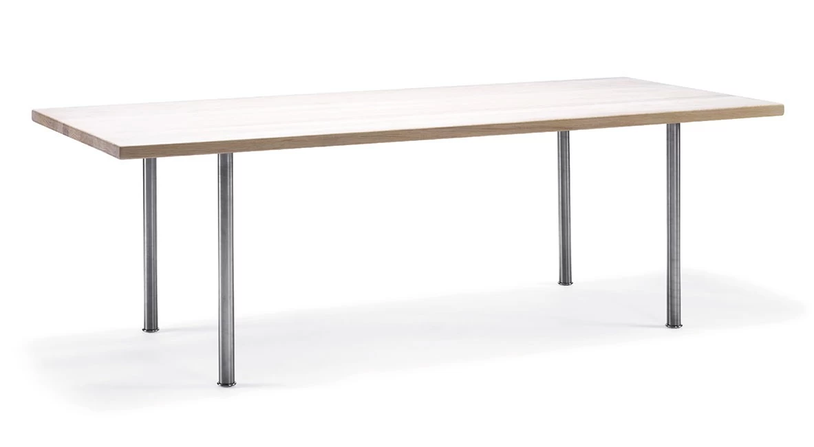 Den GE12 Coffee Table entwarf Hans Wegner im Jahr 1957 für Getama. Bei diesem sehr reduzierten Entwurf kombinierte Wegner Füße aus gebürstetem Edelstahl mit einer Tischplatte aus Massivholz. Die Massivholztischplatte des Tisches gibt es in drei verschiedenen Größen, jeweils in den Ausführungen Buche, Eiche oder Nussbaum geölt. Neben der geölten Variante ist die Tischplatte optional auch geseift möglich – wir freuen uns auf Ihre Anfrage.