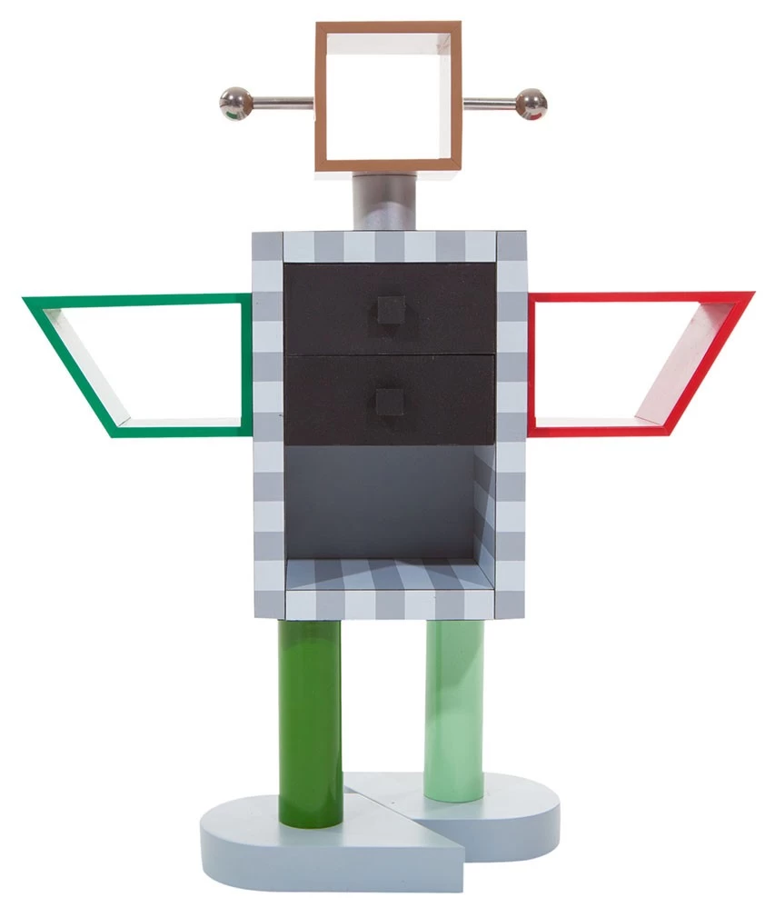 1982 entwarf der japanische Designer Masanori Umeda für Memphis Milano das Bücherregal Ginza in Form eines Roboters und schuf damit eine Designikone. Geboren in Kanagawa in Japan, zog Umeda breits 1966 nach Mailand, wo er zuerst im Studio der Castiglioni-Brüder und später bei Ettore Sottsass für Olivetti arbeitete. Später wurde Umeda Mitglied der Memphis-Gruppe, kehrte aber bereits 1980 nach Japan zurück und gründete dort ein eigenes Studio in Tokio: Umeda Design Studio.