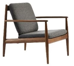 Erhältlich sind die heute wieder in Dänemark produzierten Sessel und Sofa der 118 Serie wahlweise in Eiche oder amerikanischem Nussbaum, der Textilbezug ist aus dem Stoff Fiord von Kvadrat – Informationen zur Farbauswahl finden Sie auf der Internetseite von Kvadrat.