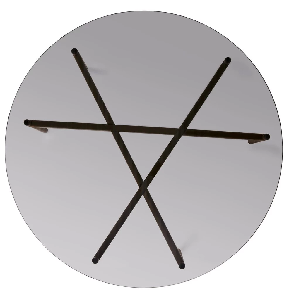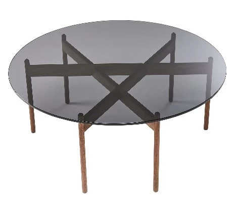 Erhältlich ist der heute wieder in Dänemark produzierte Tisch wahlweise in Eiche oder amerikanischem Nussbaum, die Glasplatte ist aus dunklem 12 mm starken Glas.