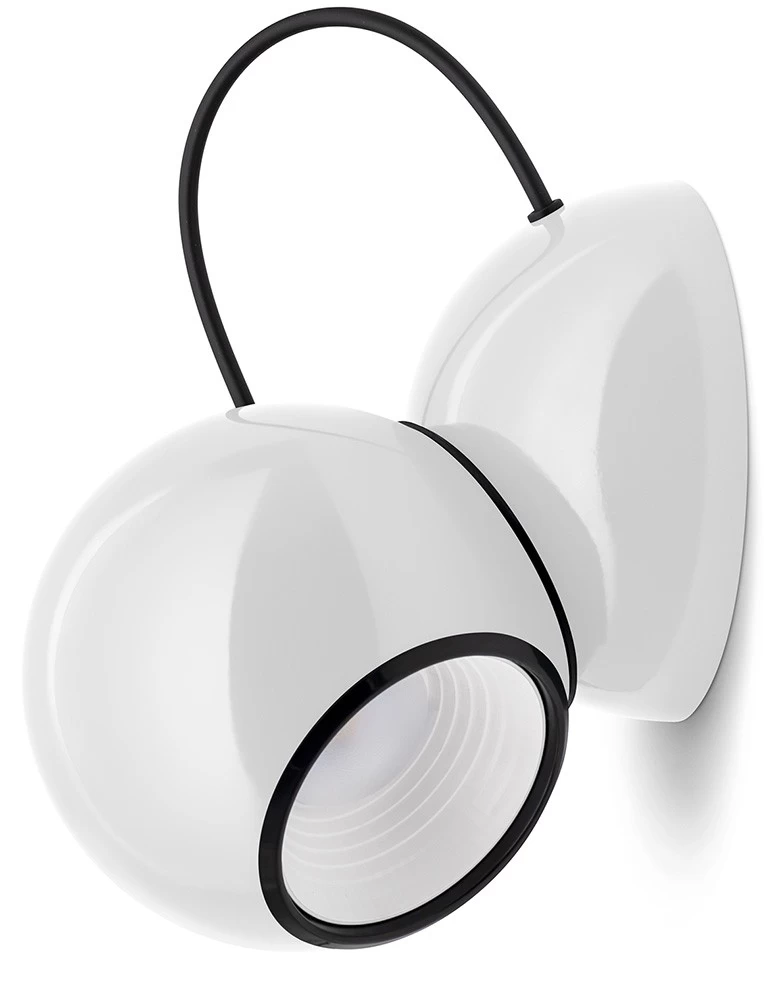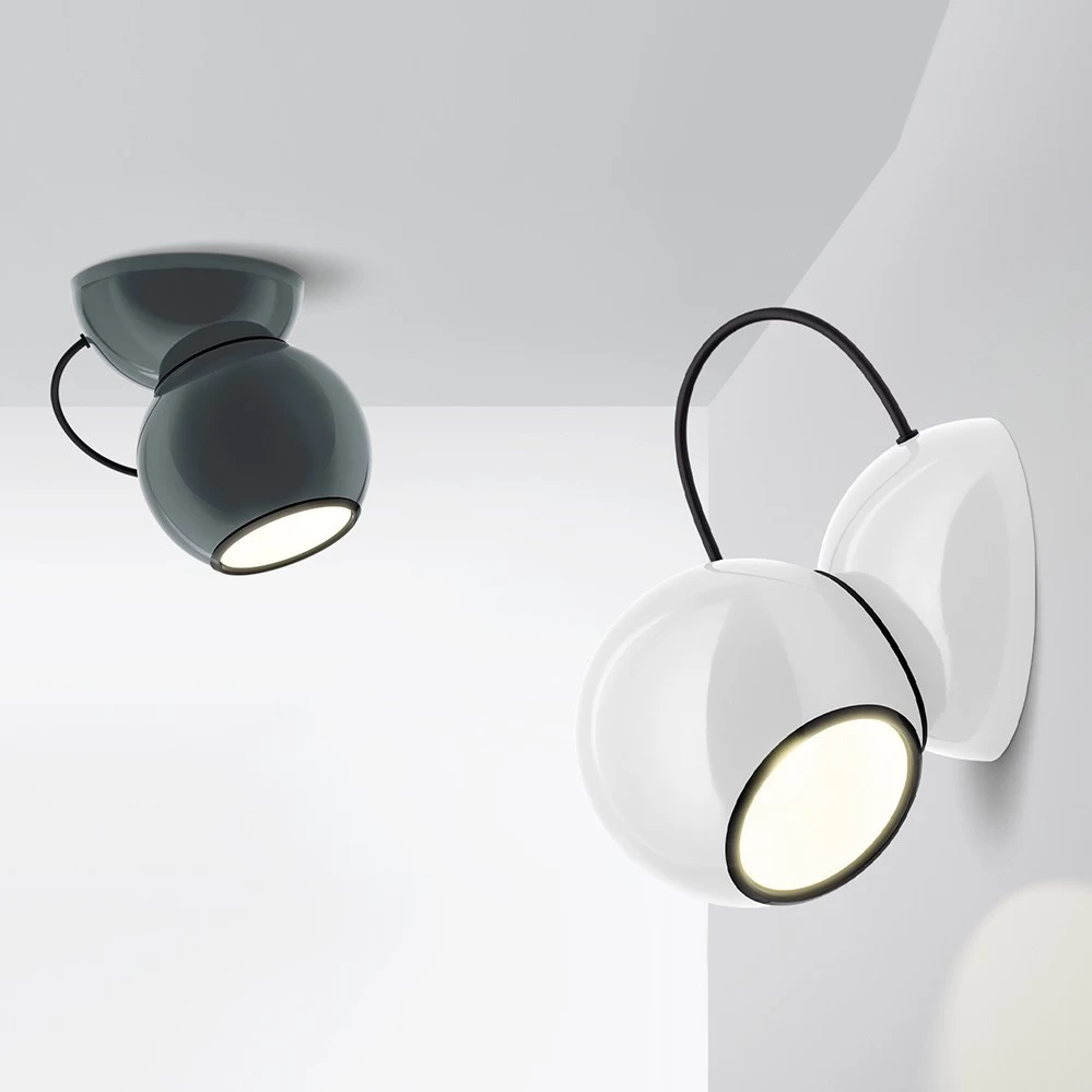 Die Adaption der Gravitino 541 Tischleuchte als Wand- und Deckenleuchte besteht aus einer Kugel, die durch einen Magneten bit der Basis verbunden sind. Diese Magnetbefestigung ermöglicht eine völlige Bewegungsfreiheit der LED-Lichtquelle, die in jede Richtung gleiten und sich um 360° drehen kann. Die Konzeptleuchte entwickelte der italienische Designer Antonio Macchi Cassia im Jahr 1969 für Stilnovo.