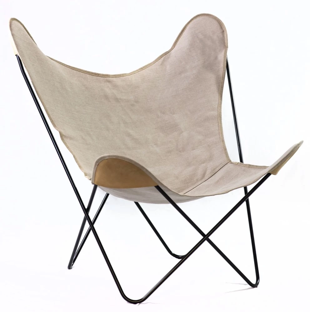 True Origins Hardoy Chair / Butterfly Chair von Jorge Ferrari-Hardoy: Leinen mit Lederlaschen
