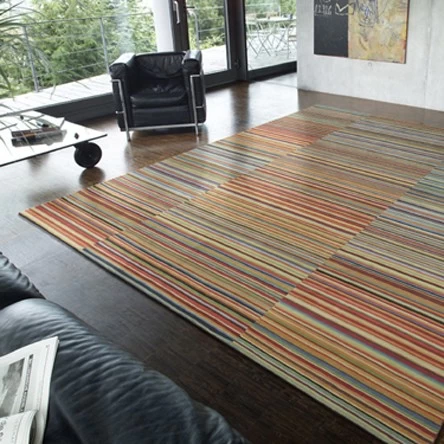 Der Teppich Harlequin ist ein Werksentwurf von Designercarpets und erinnert an die geometrischen Muster von Paul Smith oder Alfredo Häberli. Tatsächlich basiert der Teppich aber auf Jahrhunderte alten Mustern aus Nepal – welche neu interpretiert wurden. Der Teppich Harlequin wird maßgefertigt und ist in den Größen 160 x 220 cm, 200 x 300 cm, 250 x 300 cm und 300 x 400 cm lieferbar).