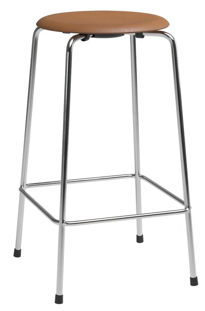 Seit 2023 bietet Fritz Hansen den vierbeinigen Jacobsen Barhocker mit einer Sitzfläche aus Holzfurnier oder Lederan, zusätzlich ist der High Dot Barhocker auch in der hohen Version mit 76 cm Sitzhöhe erhältlich.