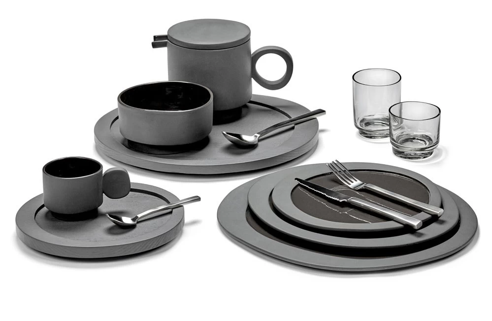 - Steingut, dunkelgrau, außen matt, innen glänzend
