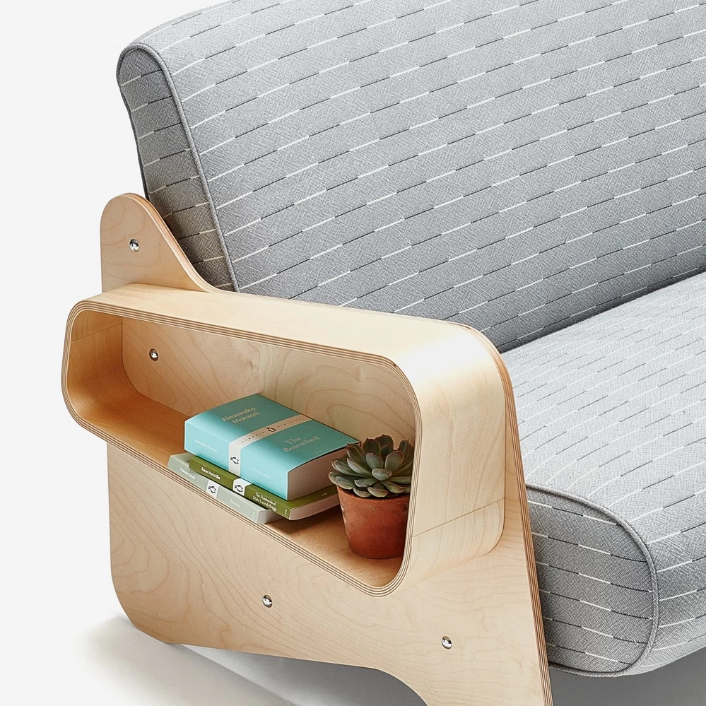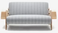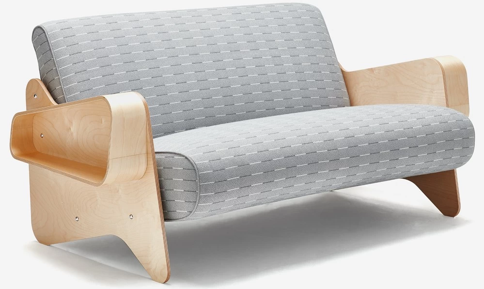 Das organisch geformte Schichtholzsofa entwarf Marcel Breuer zusammen mit dem passenden Sessel im Jahr 1936 für Isokon. Ein interessantes Detail sind dabei die Seitenteile, die zusätzlich als Ablage fungieren sollen. Erhältlich ist das Isokon Sofa mit dem für die 1930er Jahre typischen Stoffbezug Bilsdale der britischen Manufaktur Eleanor Pritchard in grau oder gelb.